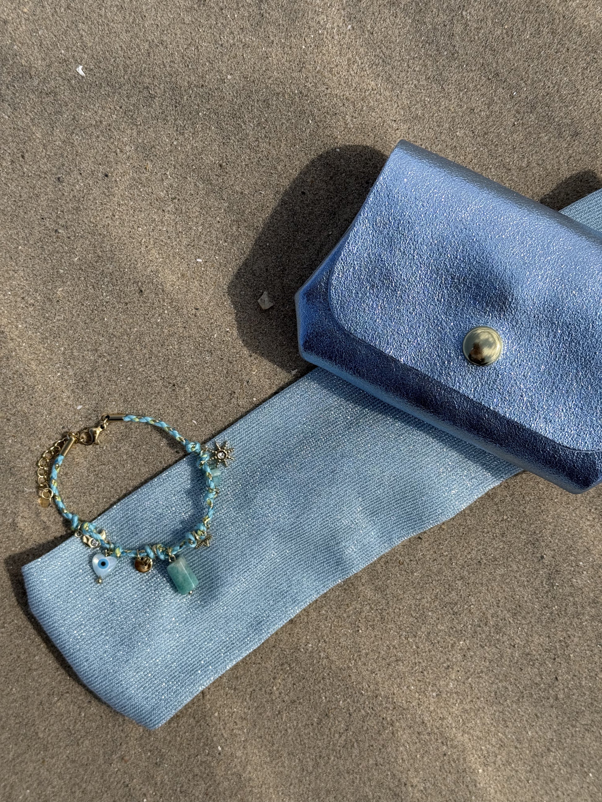 Contient un bandeau fait main, un porte monnaie 100% cuir et un bracelet breloques en acier inoxydable !