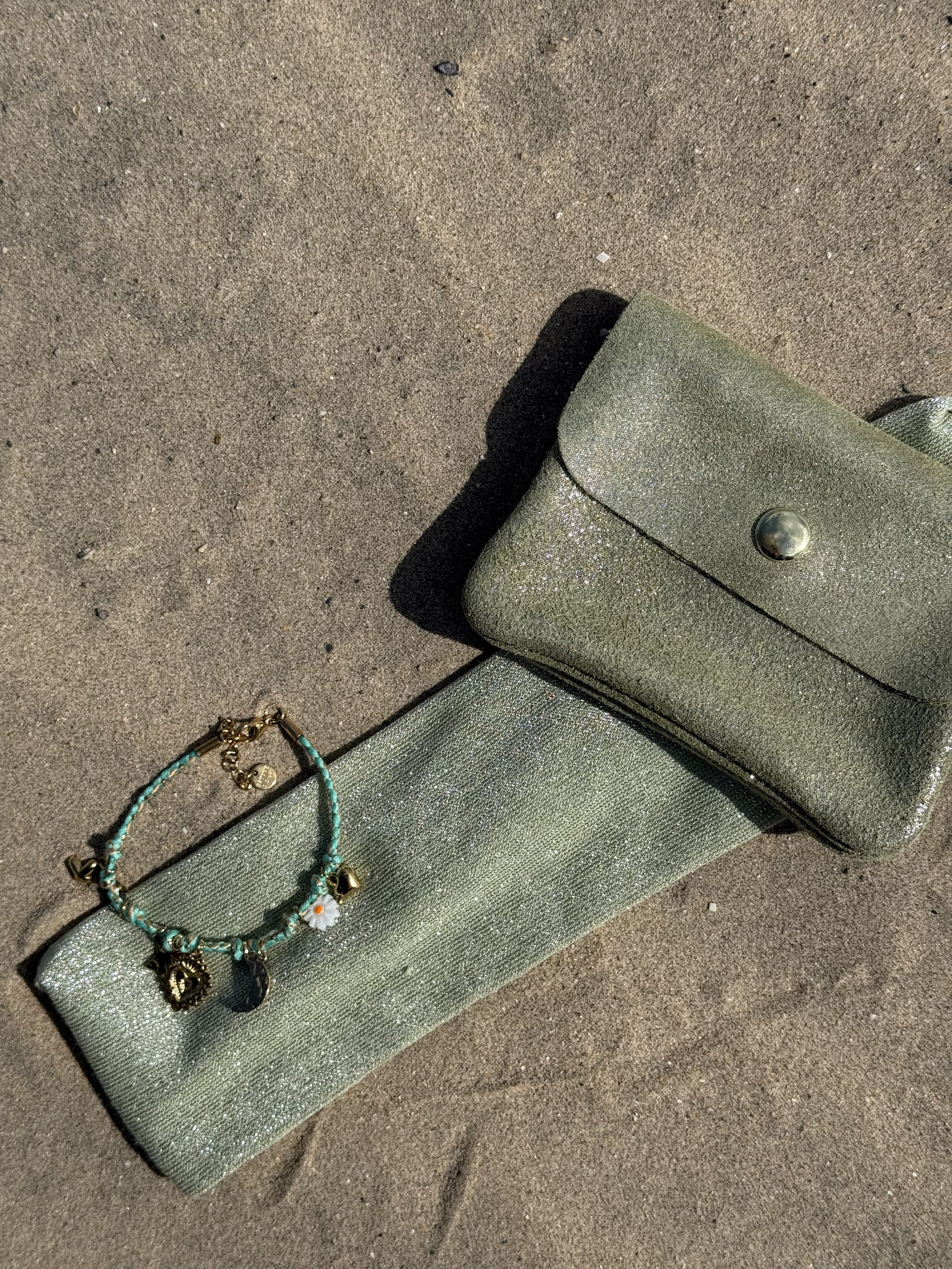 Contient un bandeau fait main, un porte monnaie 100% cuir et un bracelet breloques en acier inoxydable !