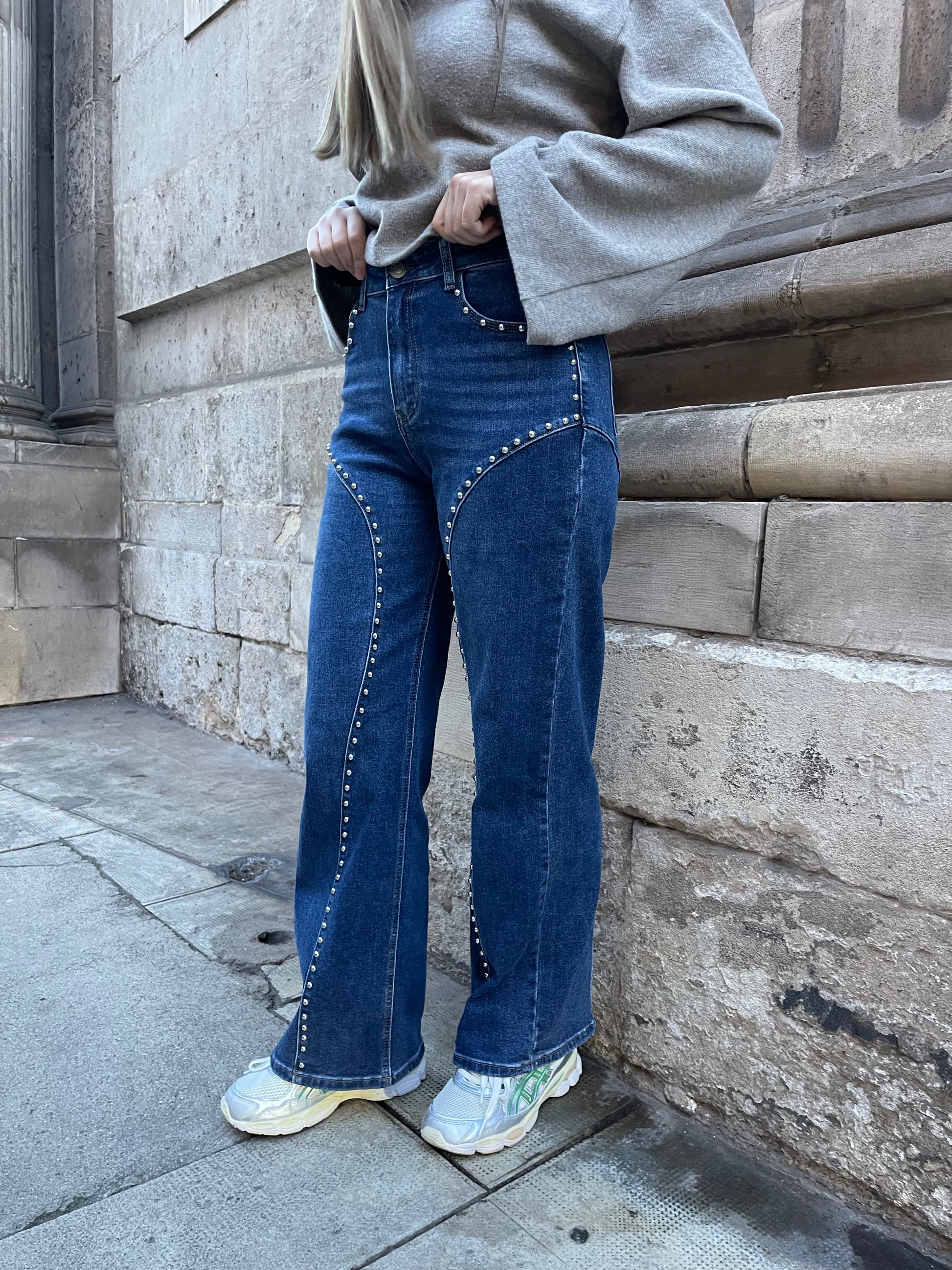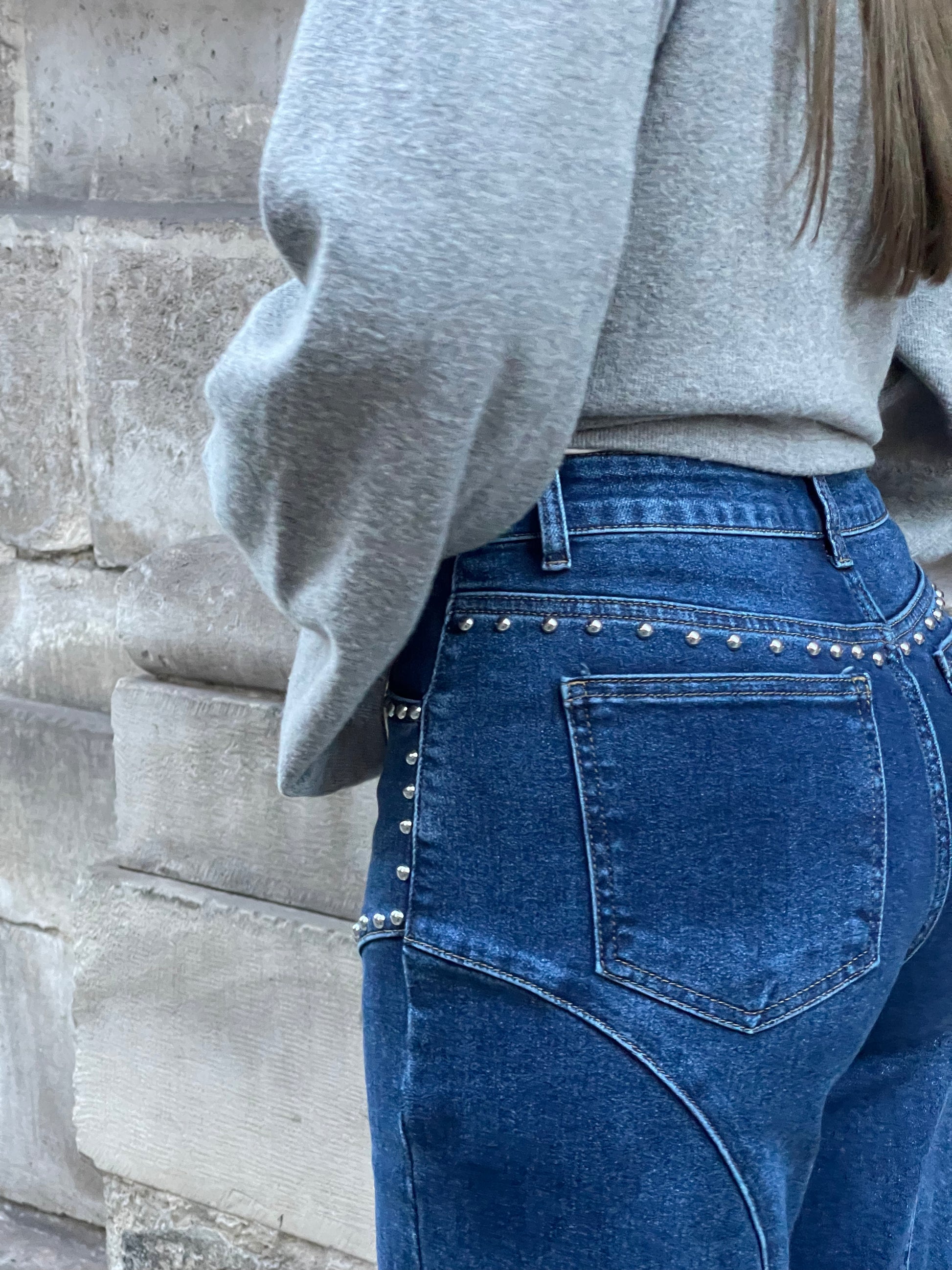 Un jean qui capte le regard et booste instantanément n’importe quelle tenue avec ses studs argentés.