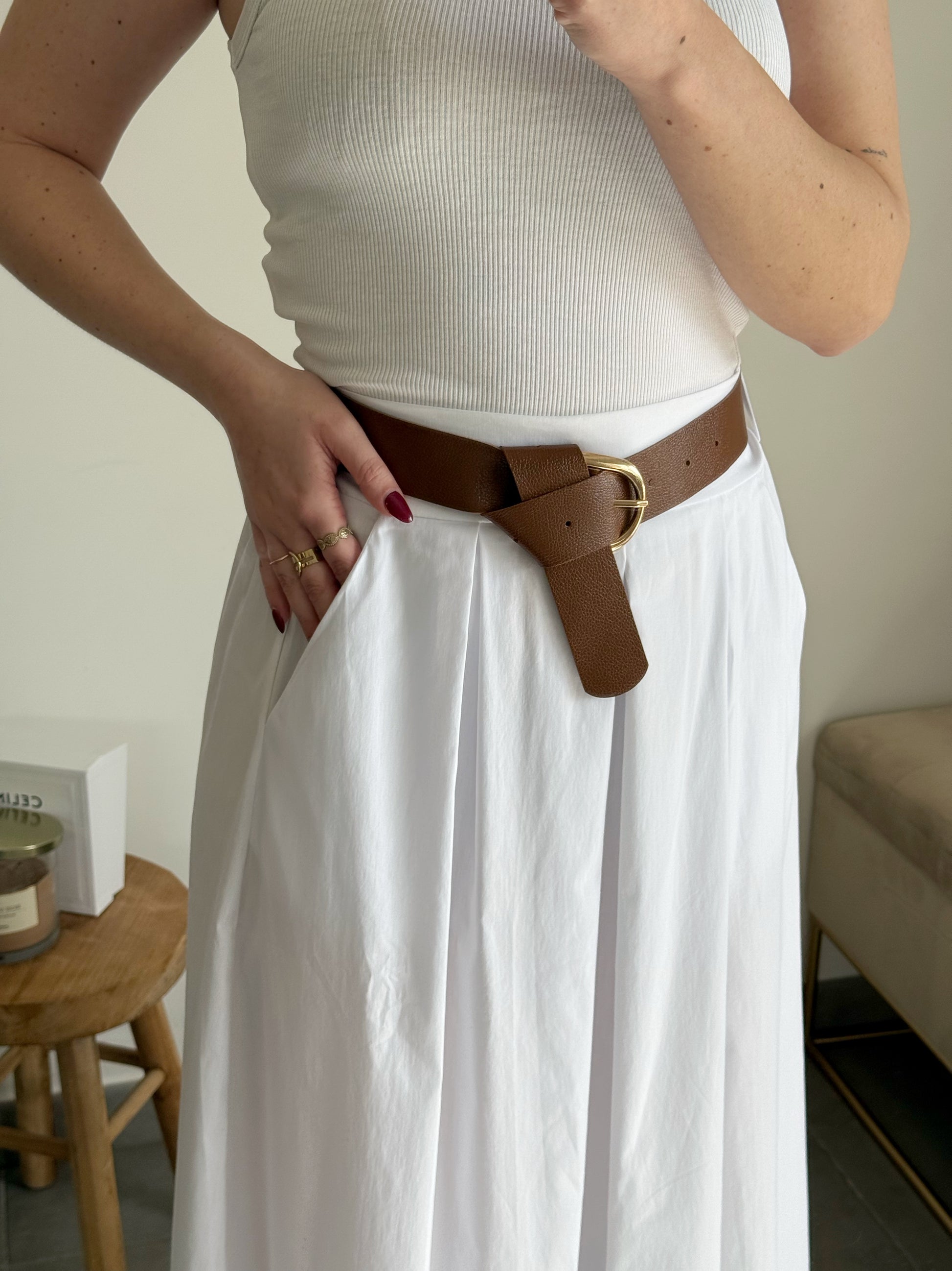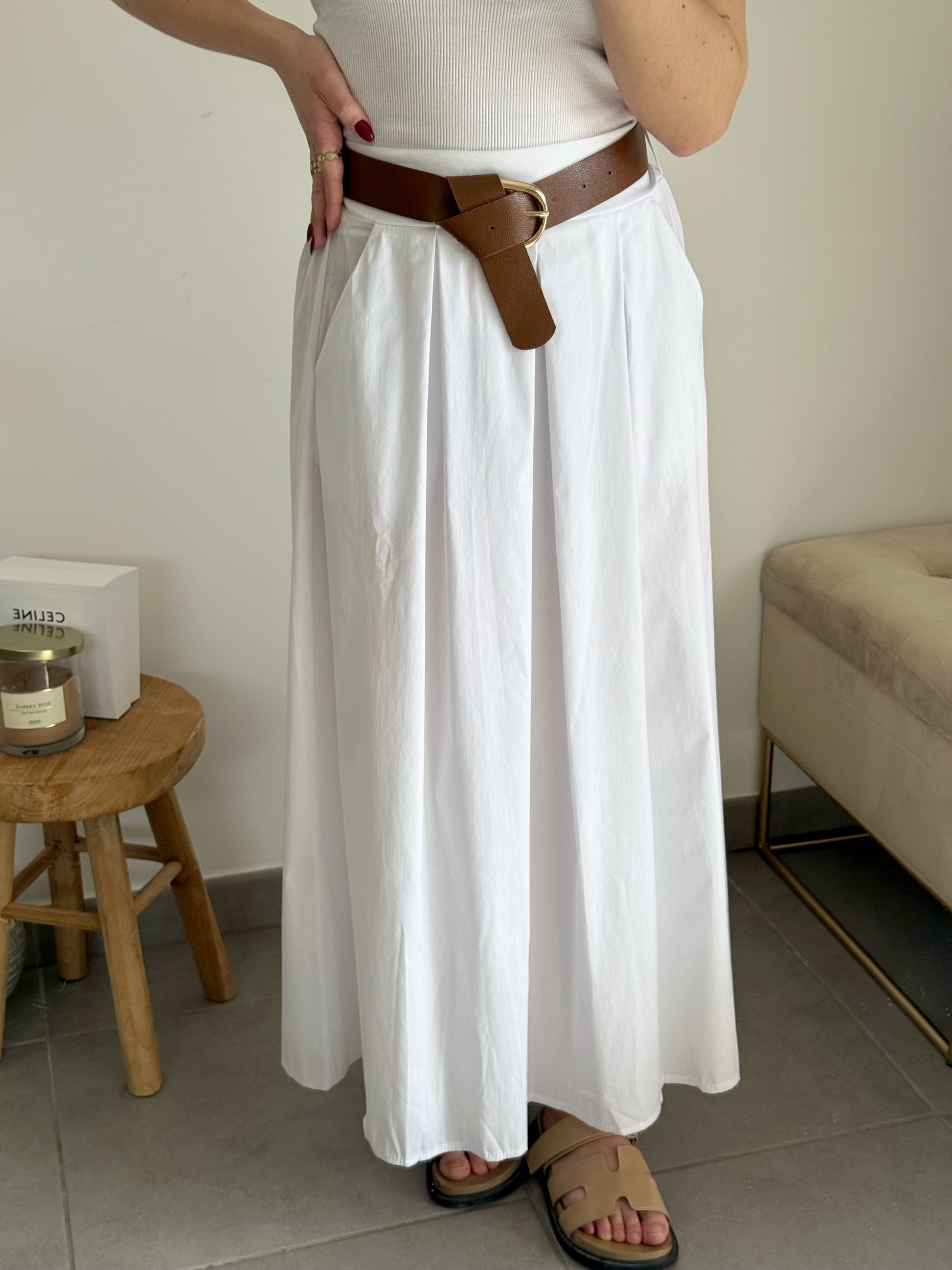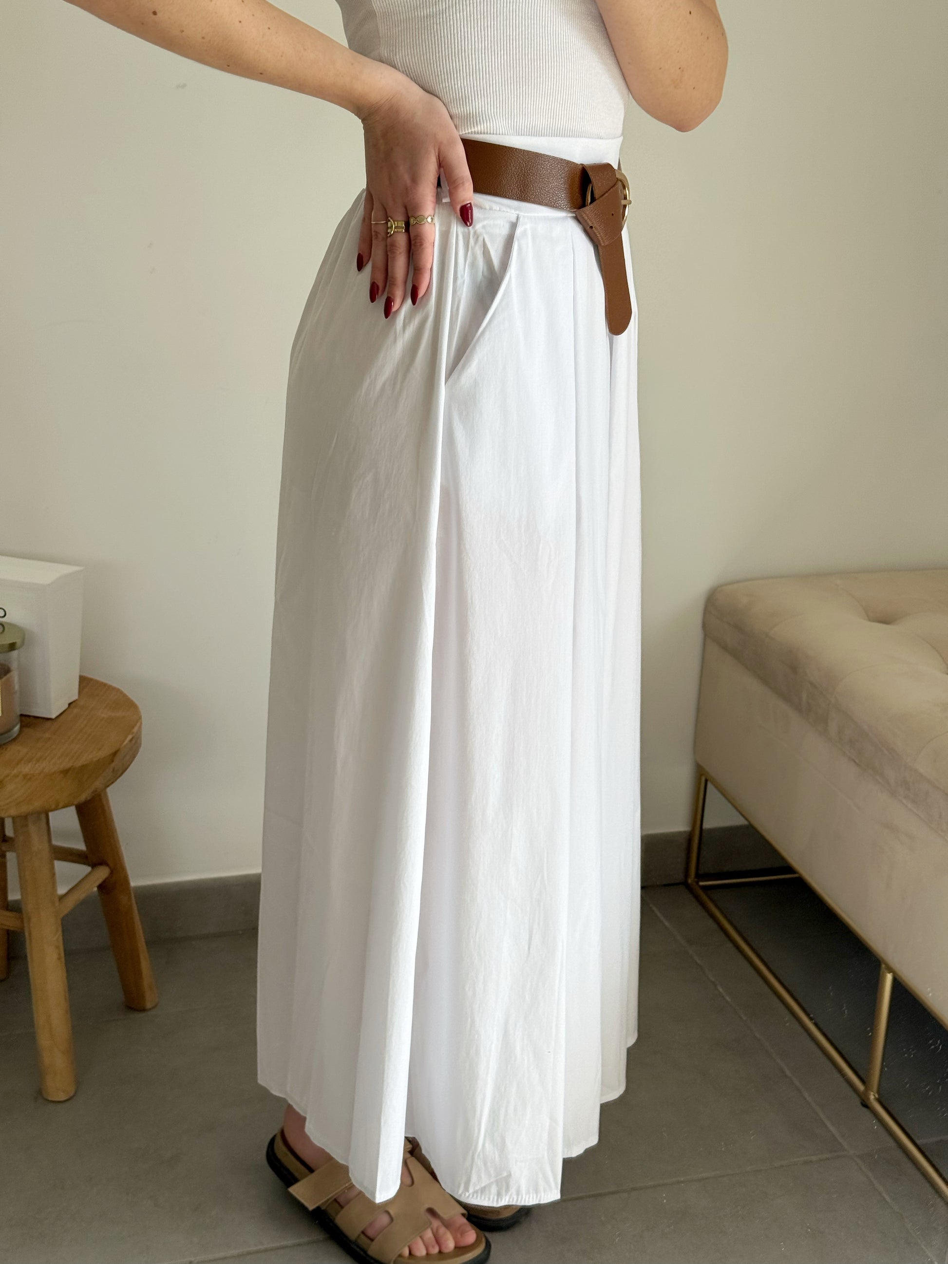 - Jupe longue blanche avec ceinture