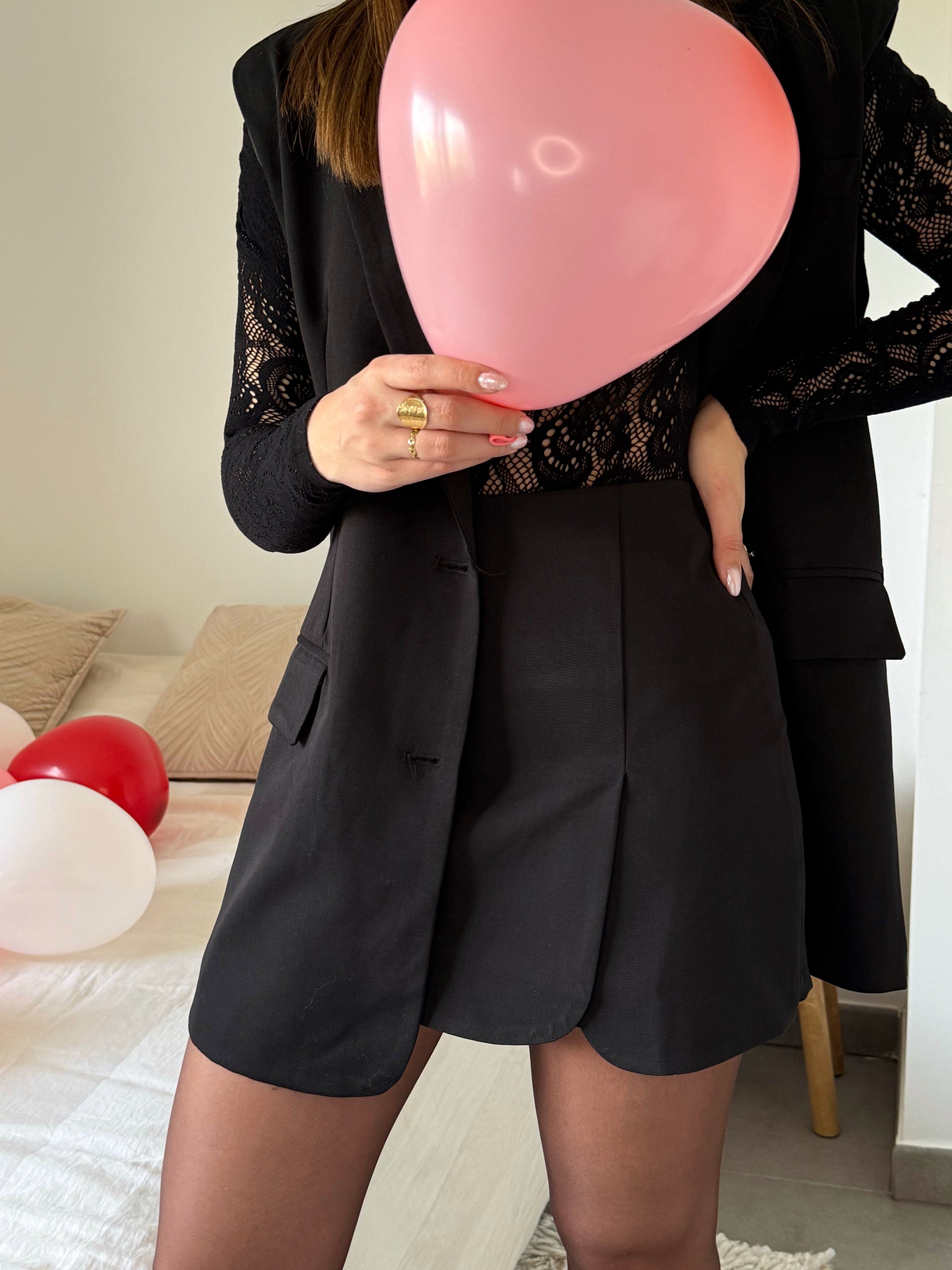 La jupe-short Lénie noire au style tailleur est à la fois élégante et intemporelle.