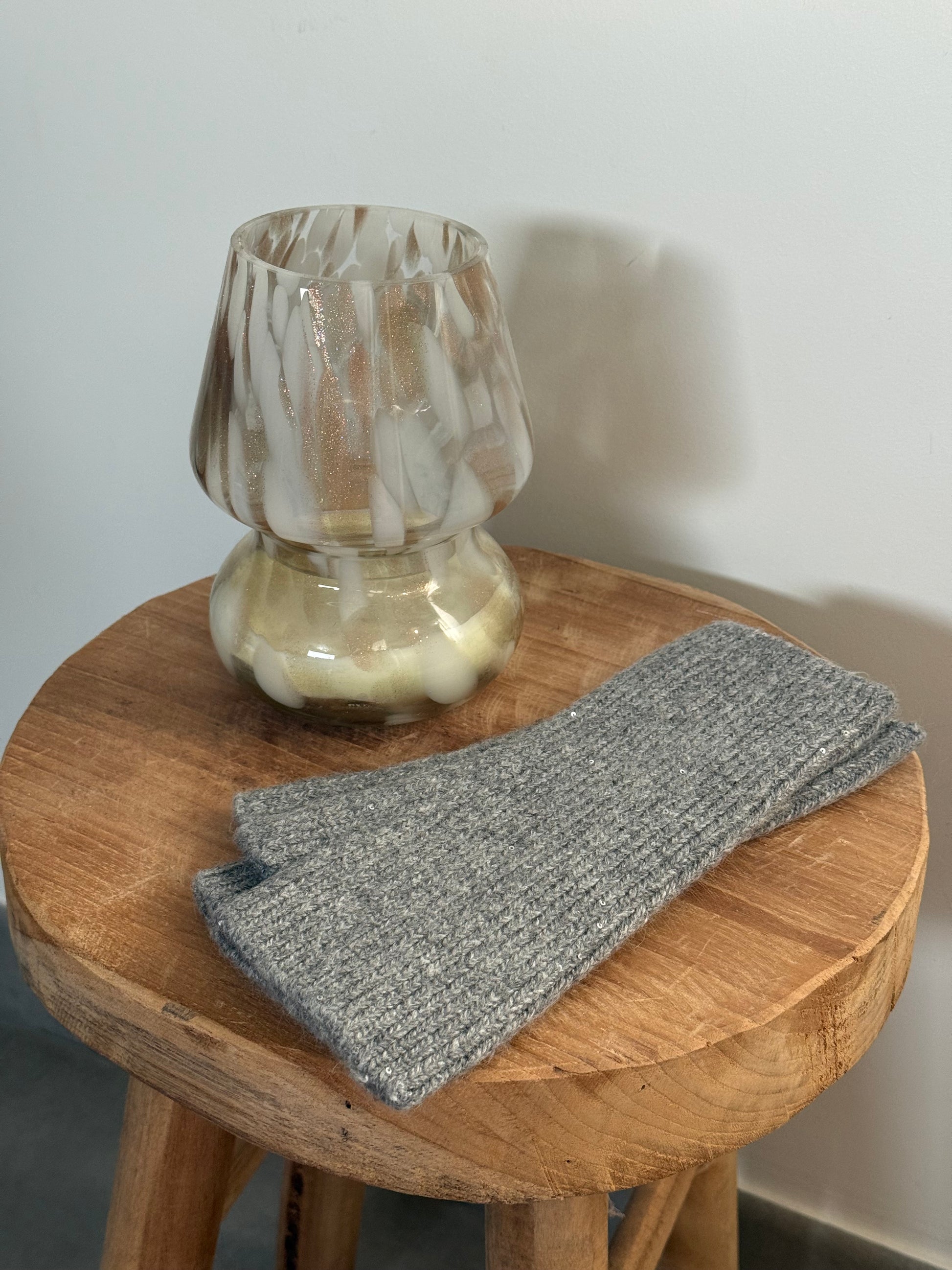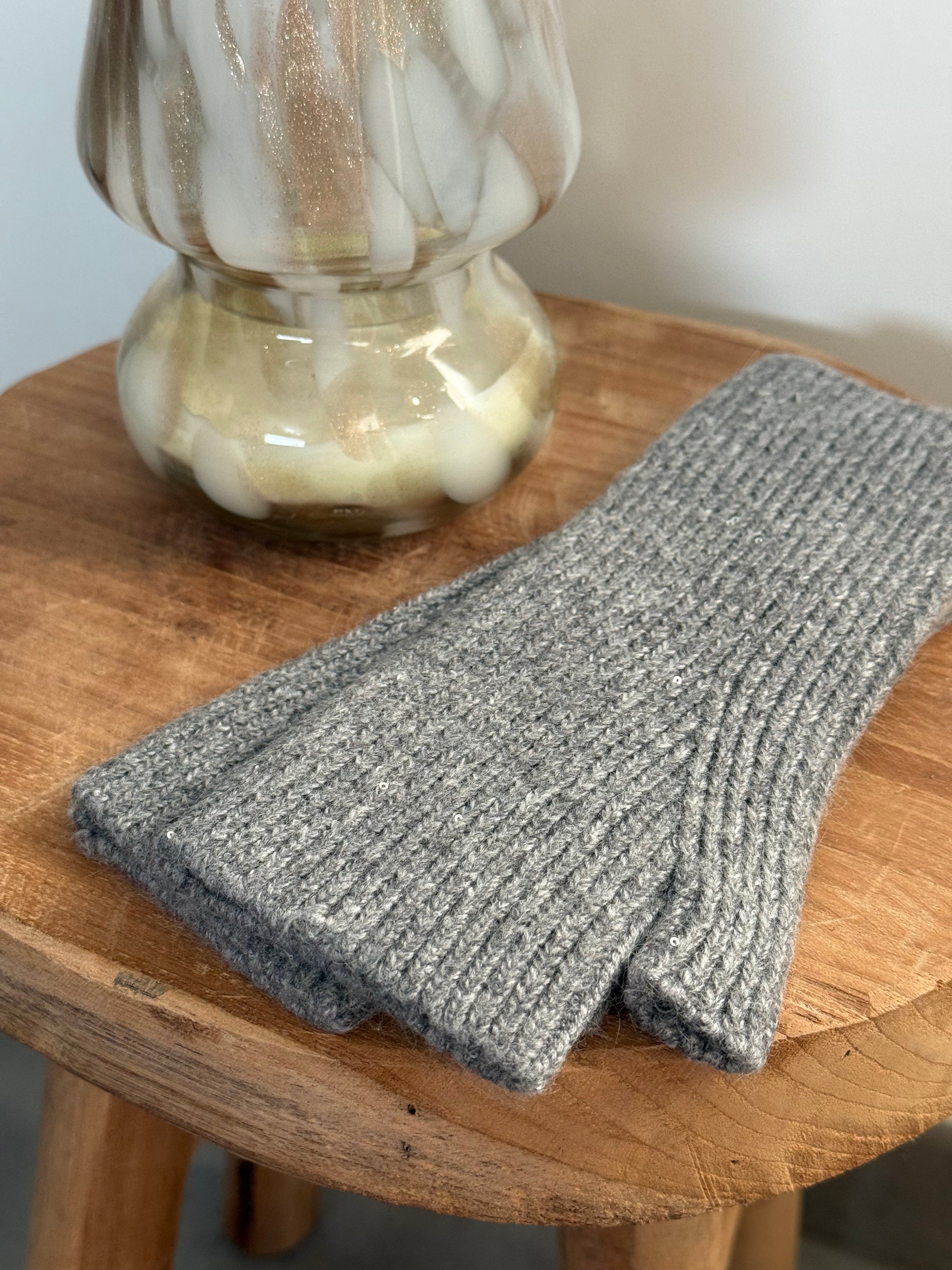 Ces mitaines en laine et angora, délicatement rehaussées de paillettes, allient chaleur et style.